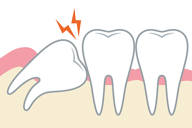 「親知らず」の痛みは、生えてくるときに歯肉が他の歯によって傷つけられたり、細菌に感染し炎症を起こしたりすることによって生じます。